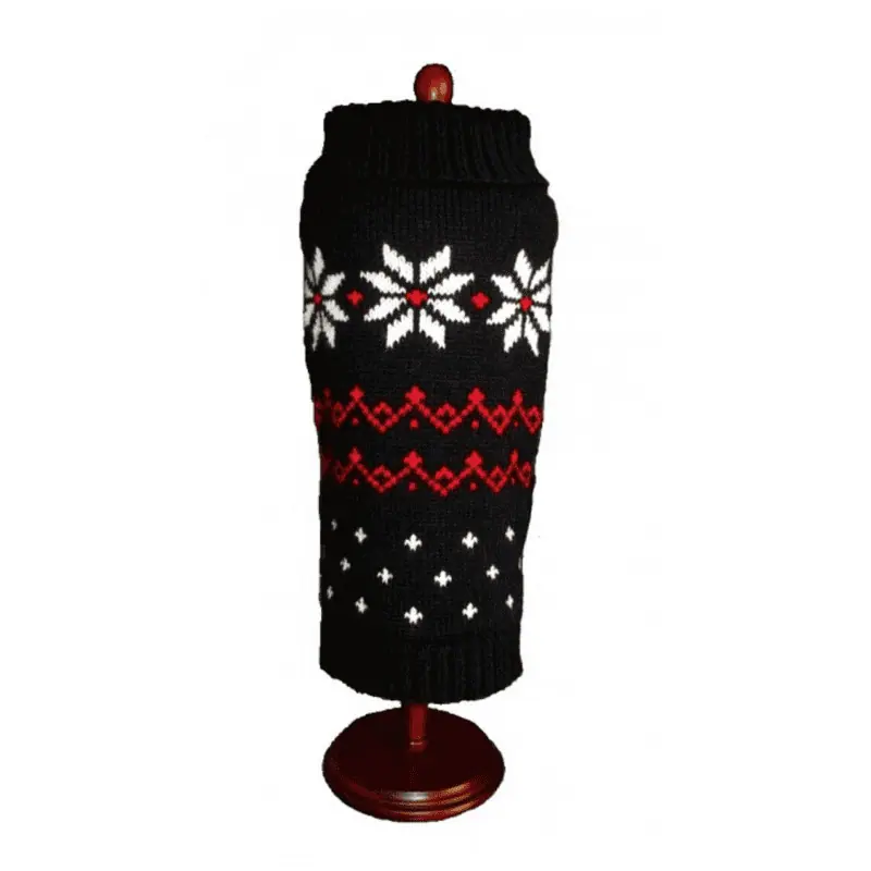 Black Fair Isle Snowflake Dog Sweater – Classic Winter Elegance