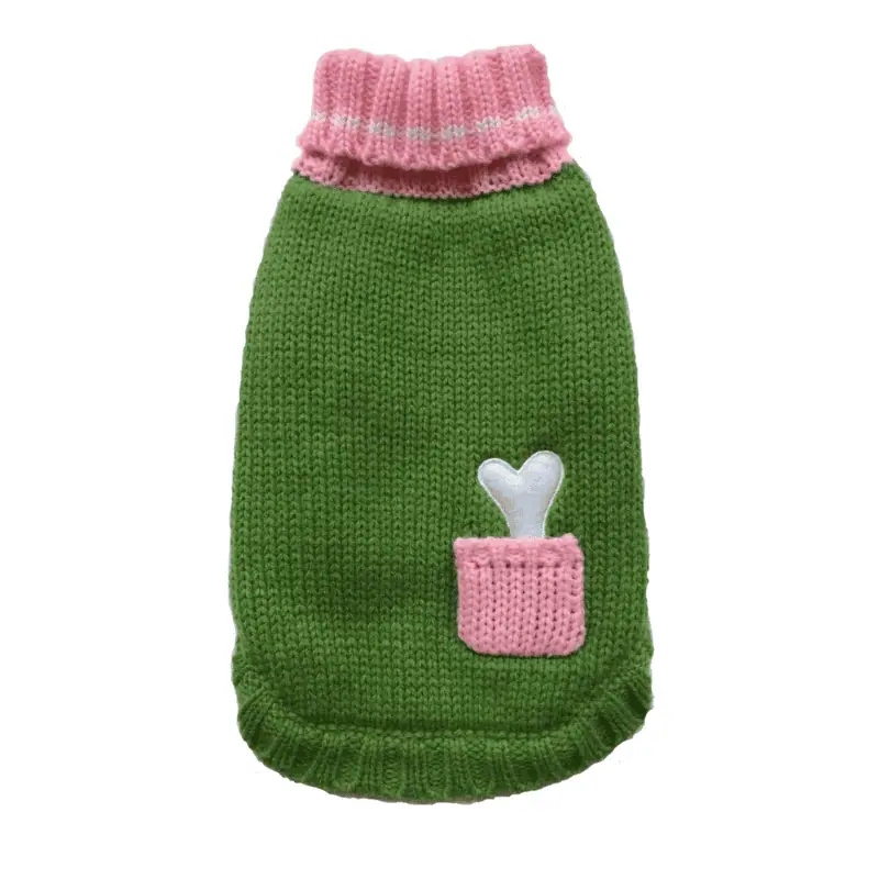 With our Bone on Board Dog Sweater, your pup will always have its bone in tow! This adorable and timeless design is one of our most popular. It features a knit pocket with a white appliquéd bone for a fun, stylish touch.