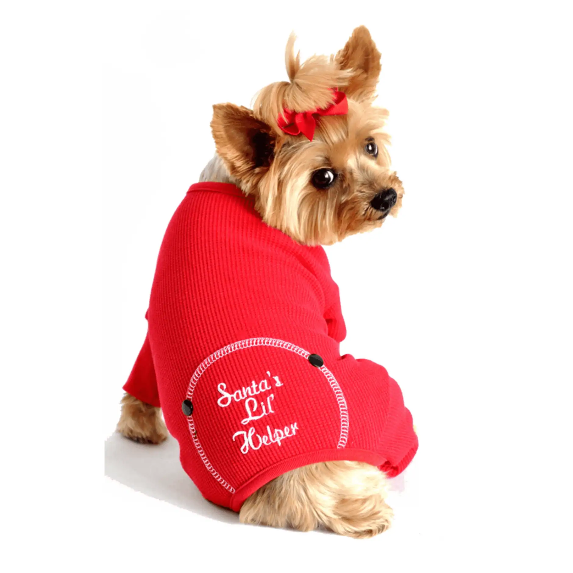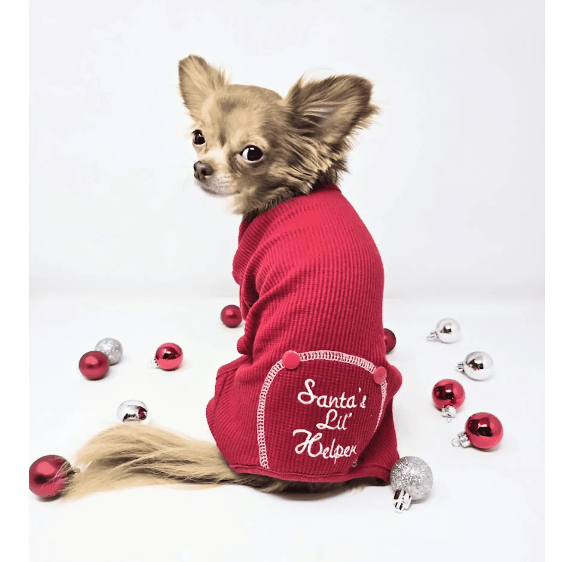 Get your pup ready for Santa’s visit with our Christmas Red Santa’s Lil’ Helper Embroidered Pajamas — a holiday favorite that sells out every year! Made from super soft 100% thermal cotton, these festive PJs offer the perfect blend of warmth, comfort, and stretch, making them easy to put on and cozy to wear all season long.