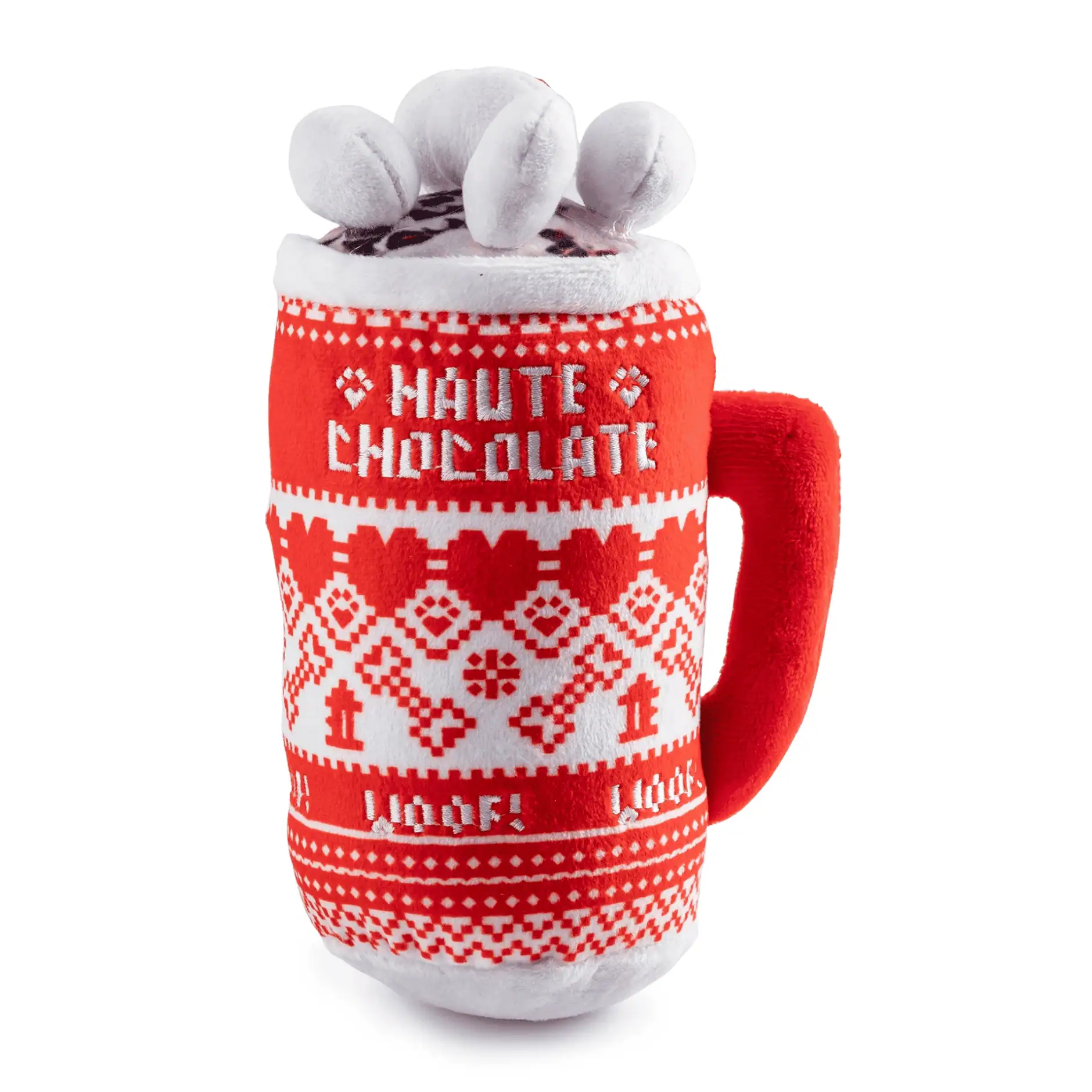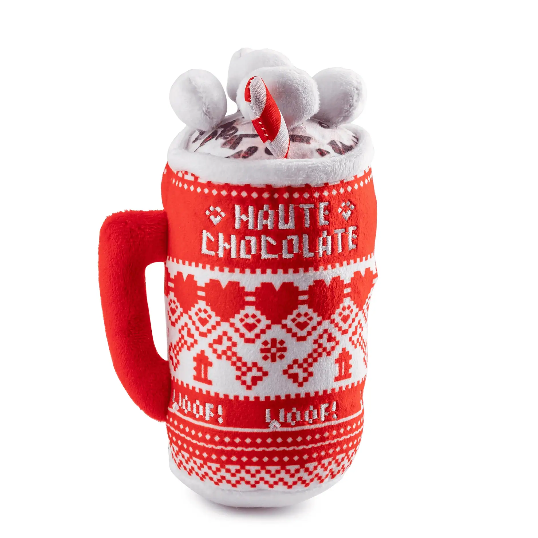 Warm up your pup’s winter with the Haute Chocolate Dog Toy—crafted for cozy cuddles and playful bites! This plush cup features charming holiday details like a cozy sweater-knit print and fluffy marshmallow toppers, bringing festive vibes to every chew session. With a built-in squeaker for extra excitement, this seasonal dog toy is perfect for tug, fetch, or solo snuggles. Whether under the tree or by the fireplace, it’s the pawfect gift for your holiday-loving hound!