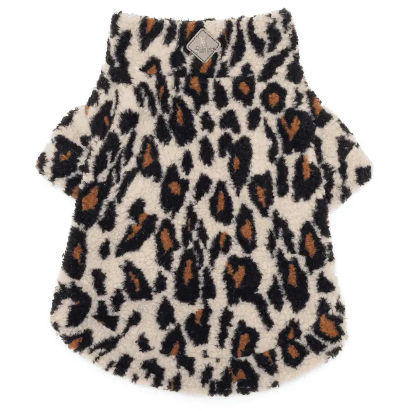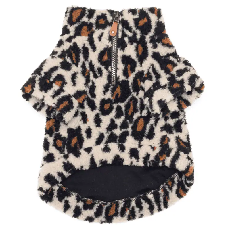Leopard Sherpa Zipper Dog Pullover – Cozy and Stylish