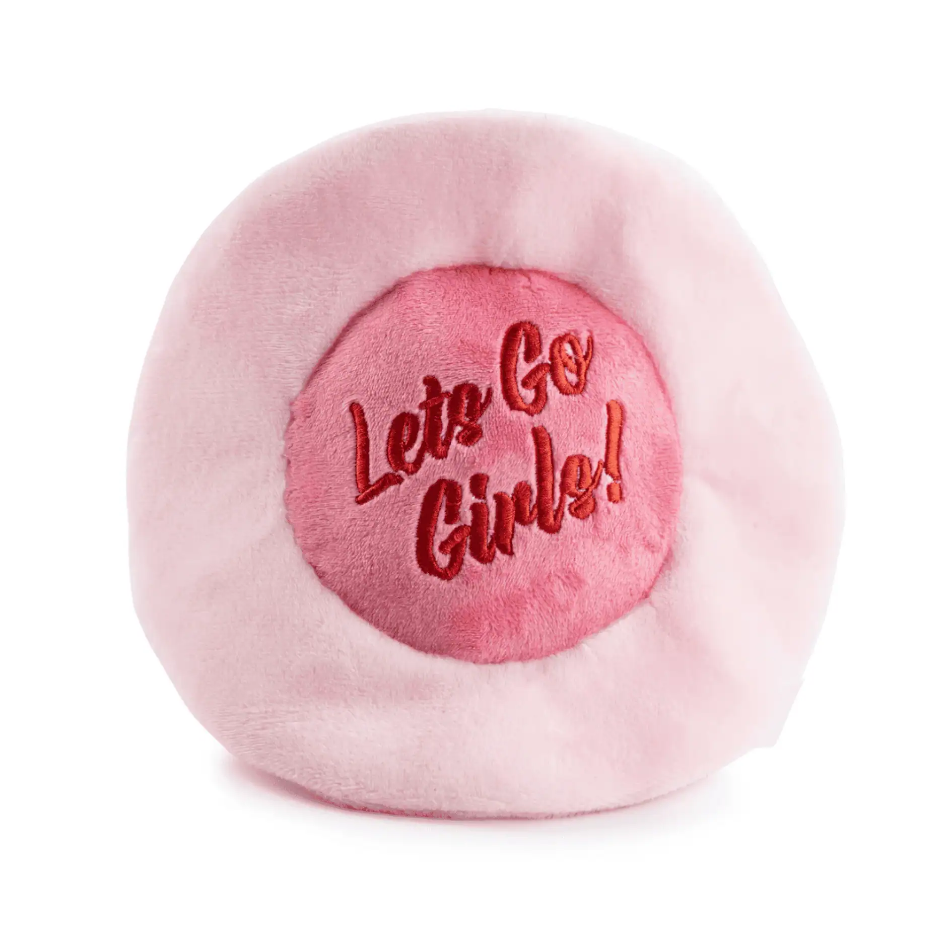 Giddy up for tail-wagging fun with the Pink Cowgirl Hat Dog Toy! Designed for playful pups with big personality, this plush toy features bold pink embroidery that proudly shouts “Let’s Go Girls!”—on both the side and bottom. Made with soft yet durable materials, it’s packed with a squeaker and crinkly texture for added excitement during every fetch, chew, or tug session. Reinforced mesh lining ensures long-lasting fun, even for rough riders.