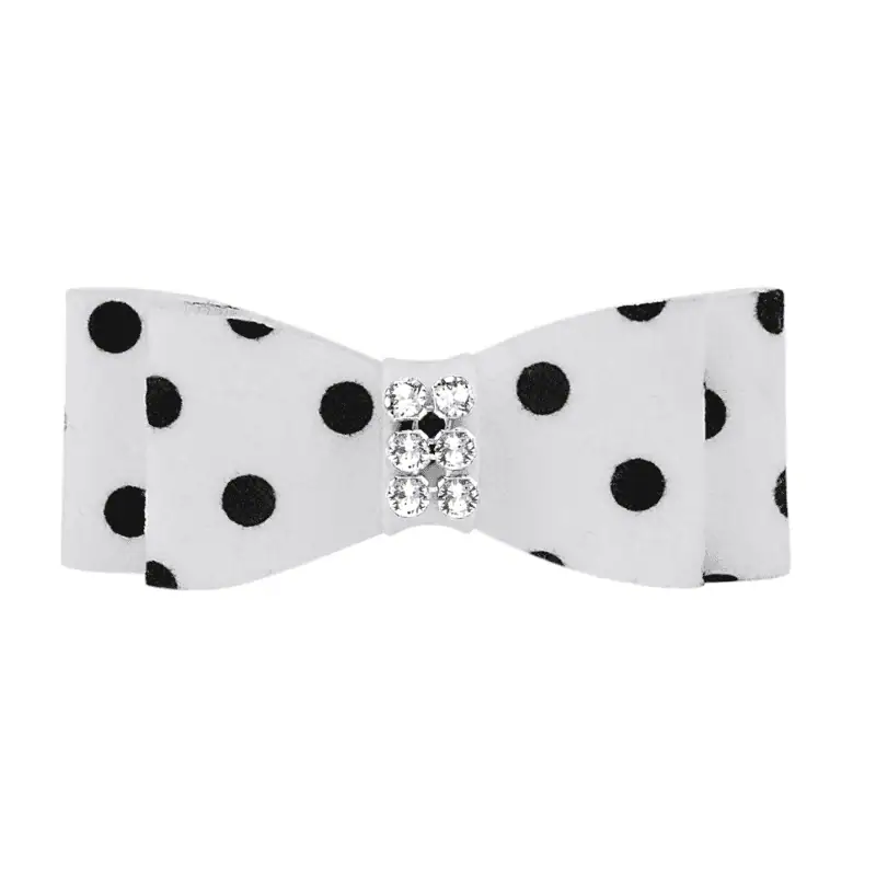 Add a playful pop of charm to your dog’s look with the Polka Dot Giltmore Hair Bow—a sweet and stylish accessory designed to turn heads and wag tails. Featuring cheerful polka dots and sparkling Aurora Borealis Giltmore Crystals, this bow blends classic cuteness with luxe flair. Whether it’s a stroll through the park or a special event, your pup will be picture-perfect and fabulously fun.