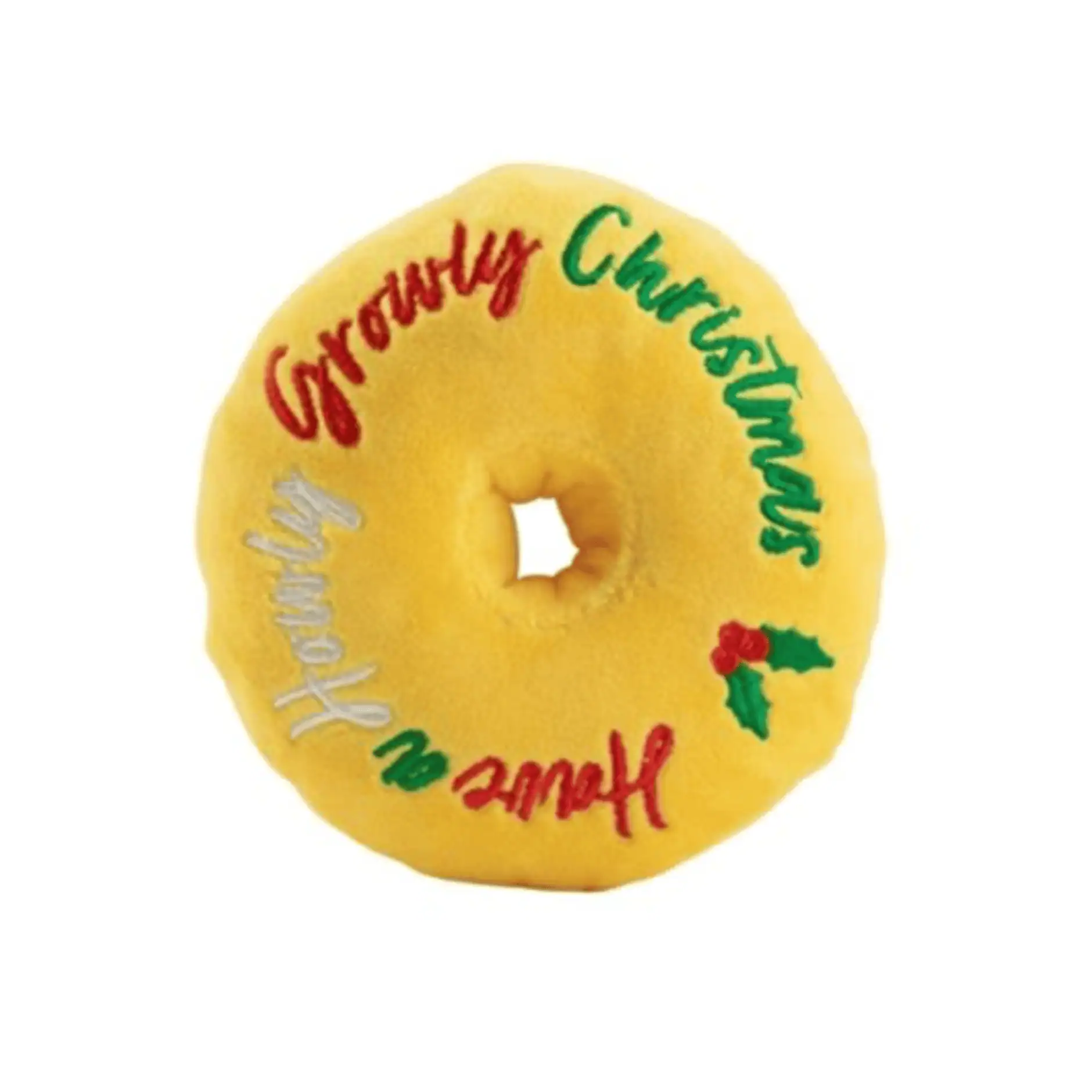 Treat your pup to the sweetest howliday surprise with the Puppermint Donut Dog Toy! This festive, donut-shaped plush toy features a cozy fuzzy exterior decorated with peppermint chips and a chocolaty design that looks good enough to eat. Inside, it hides a squeaker and crackly material to deliver exciting sounds with every chomp, chew, and squeeze. Perfect for pups who love playful pastries, this holiday dog toy adds a dash of peppermint joy to every paw-ty. Great for gifting or stuffing stockings!