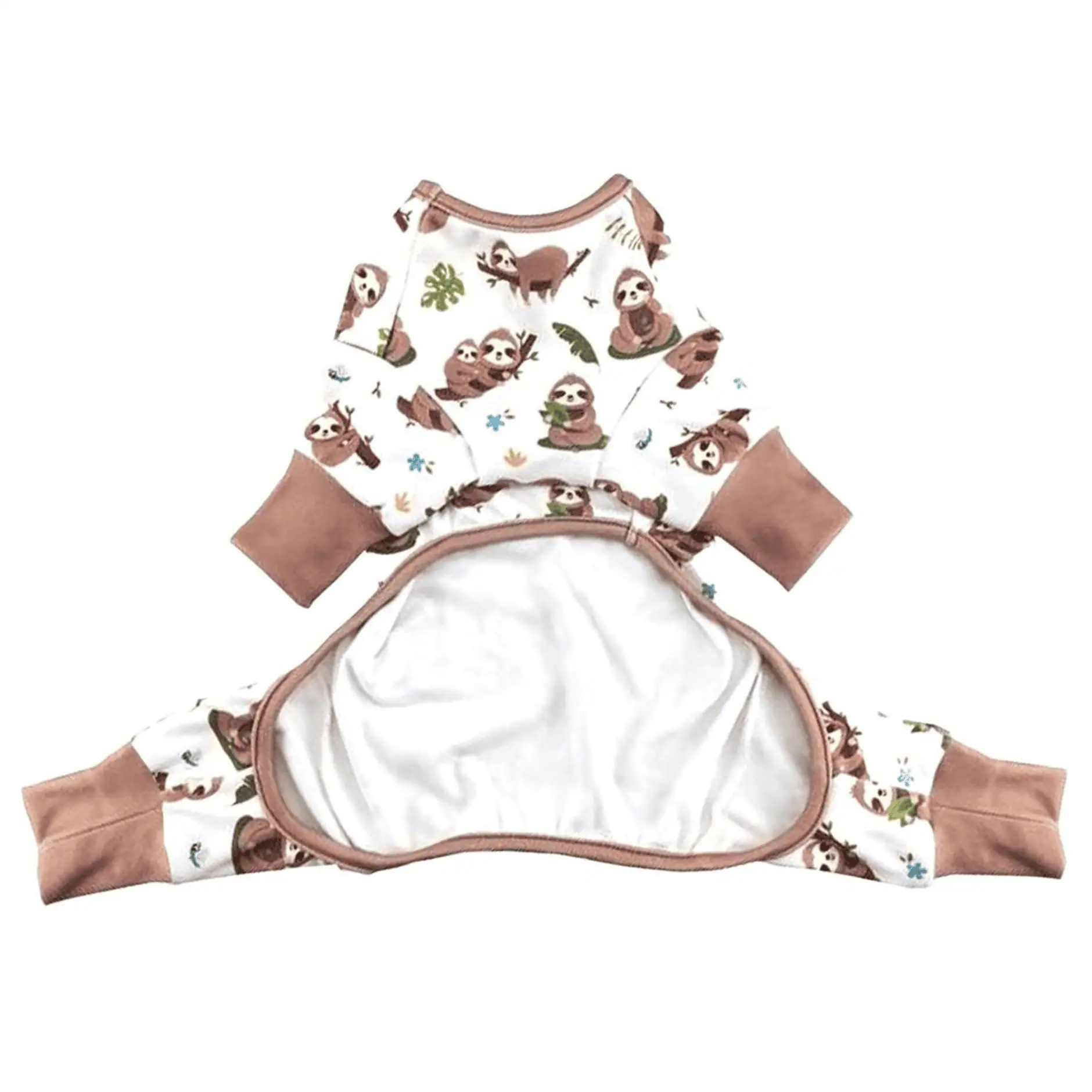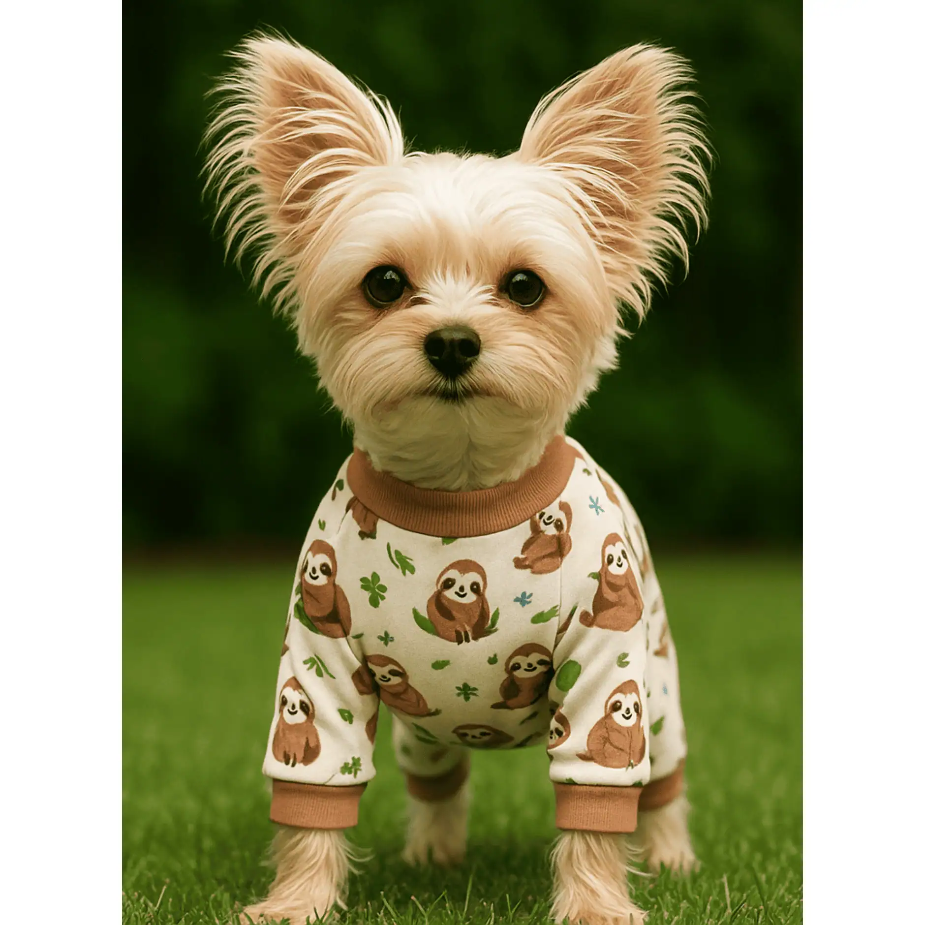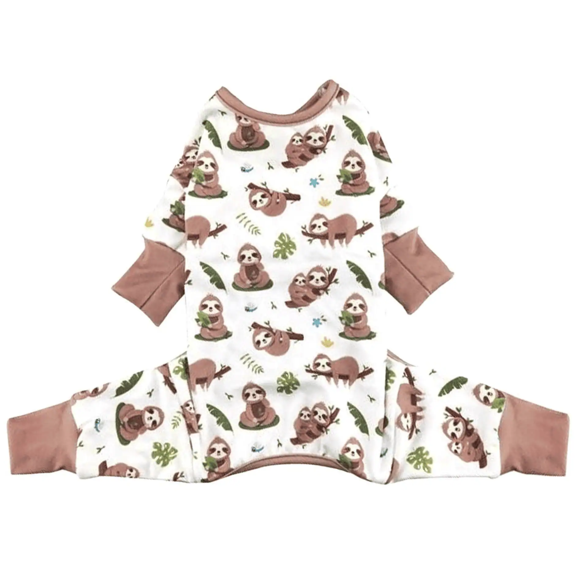 Take it slow and let your pup unwind in cozy style with our Sloths Soft Dog Pajamas! Made from ultra-soft, custom-designed fabric, these adorable full-body PJs feature a playful sloth print with brown cuffs for a snug, comfortable fit.