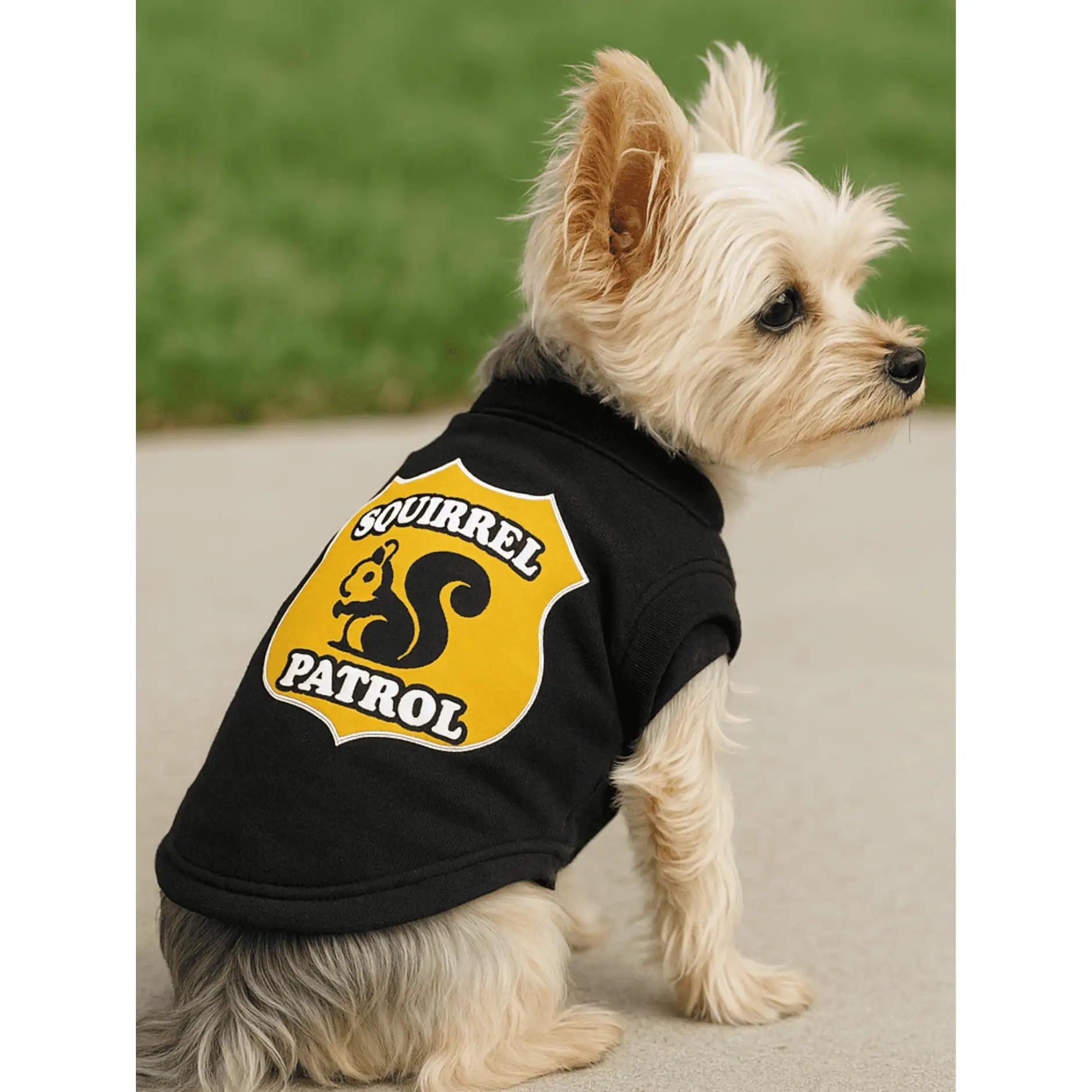 Unleash your pup’s inner wildlife watcher with the Squirrel Patrol Dog Tank! This sleek Jet Black dog shirt features a playful “Squirrel Patrol” graphic, perfect for dogs who take their backyard or park patrols very seriously.