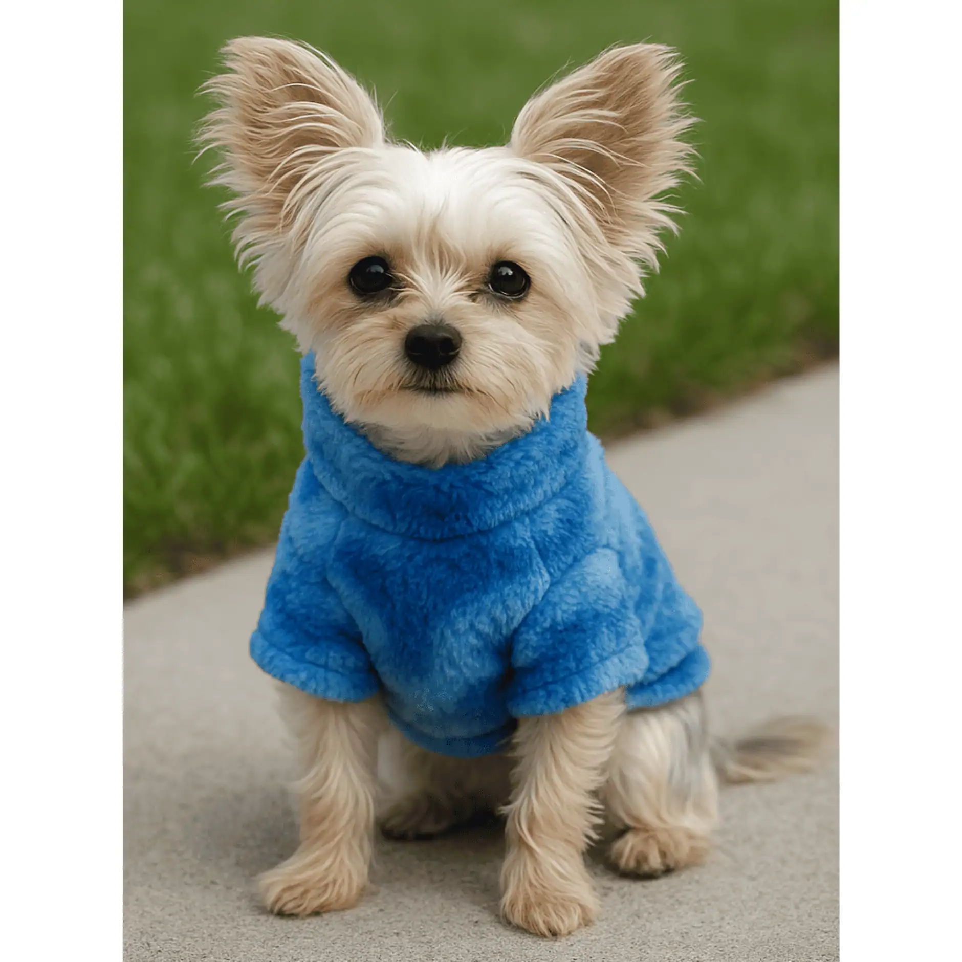 Keep your pup cozy and stylish in our Tie Dye Blue & White Soft Plush Pullover. Made from ultra-soft, high-quality plush fabric, this lightweight pullover provides warmth without the bulk—perfect for chilly days or lounging at home. The fun blue and white tie-dye pattern adds a trendy touch while keeping your dog snug and comfortable all winter long.