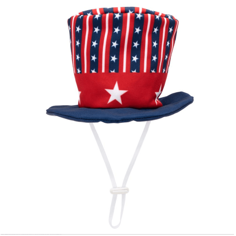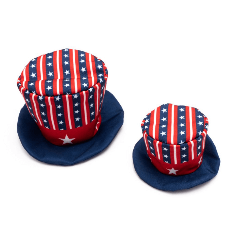 Introducing the ultimate two-for-one accessory for your furry friend’s next party β the Uncle Sam Party Dog Hat! Pose for the picture, then play with the toy! Made from strong Oxford nylon fabric and featuring an elastic chin strap with an adjustable toggle for a comfortable fit, itβs a must-have for playful pups that love to celebrate in style. Simply remove the elastic once the occasion is over and party time becomes play time! Dogs will love its crinkle sound, helping to keep them engaged and entertained while promoting active play. Available in two sizes to help you find the best fit for your favorite pets! Disclaimer: Remove elastic chin strap and toggle before play. The Worthy Dog hats are meant for supervised play only to prevent accidental swallowing of parts. They are not chew toys. No toy is indestructible. Please discard the toy if it becomes damaged.